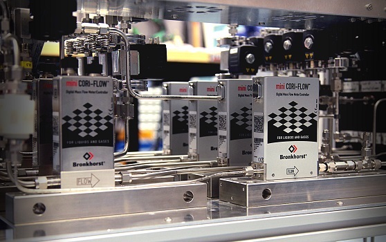 ![]() 安裝中的科里奧利流量計,mini CORI-FLOW ML120系列 |