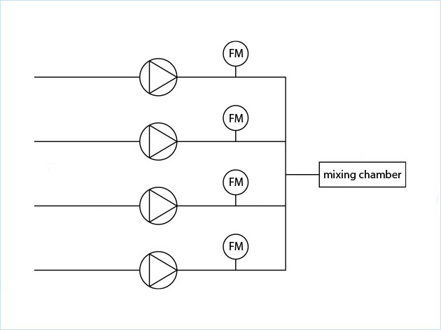 | 沖擊式射流混合過程中使用的化合物一直是液體,例如有機(jī)溶劑中的脂質(zhì)、水中的API以及阻止mRNA周圍形成表面的終止劑。由于過程中成分不同,需要不受流體物性影響的液體流量計(jì),因此使用了科里奧利流量計(jì)。