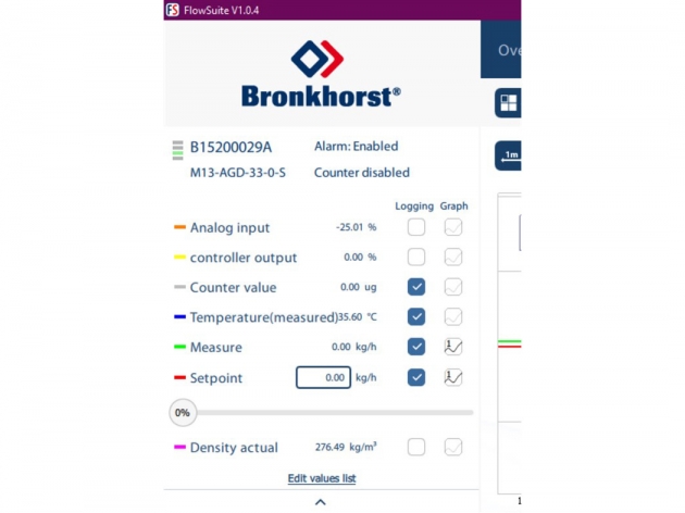 Bronkhorst FlowSuite是一款用于Bronkhorst數(shù)字儀表監(jiān)控和服務(wù)的軟件應(yīng)用程序,可動態(tài)監(jiān)測測量儀表和控制器,并對控制器、報警和計數(shù)器設(shè)置進(jìn)行調(diào)整。軟件工具可將測量數(shù)據(jù)存儲在CSV文件中作為數(shù)據(jù)記錄器。