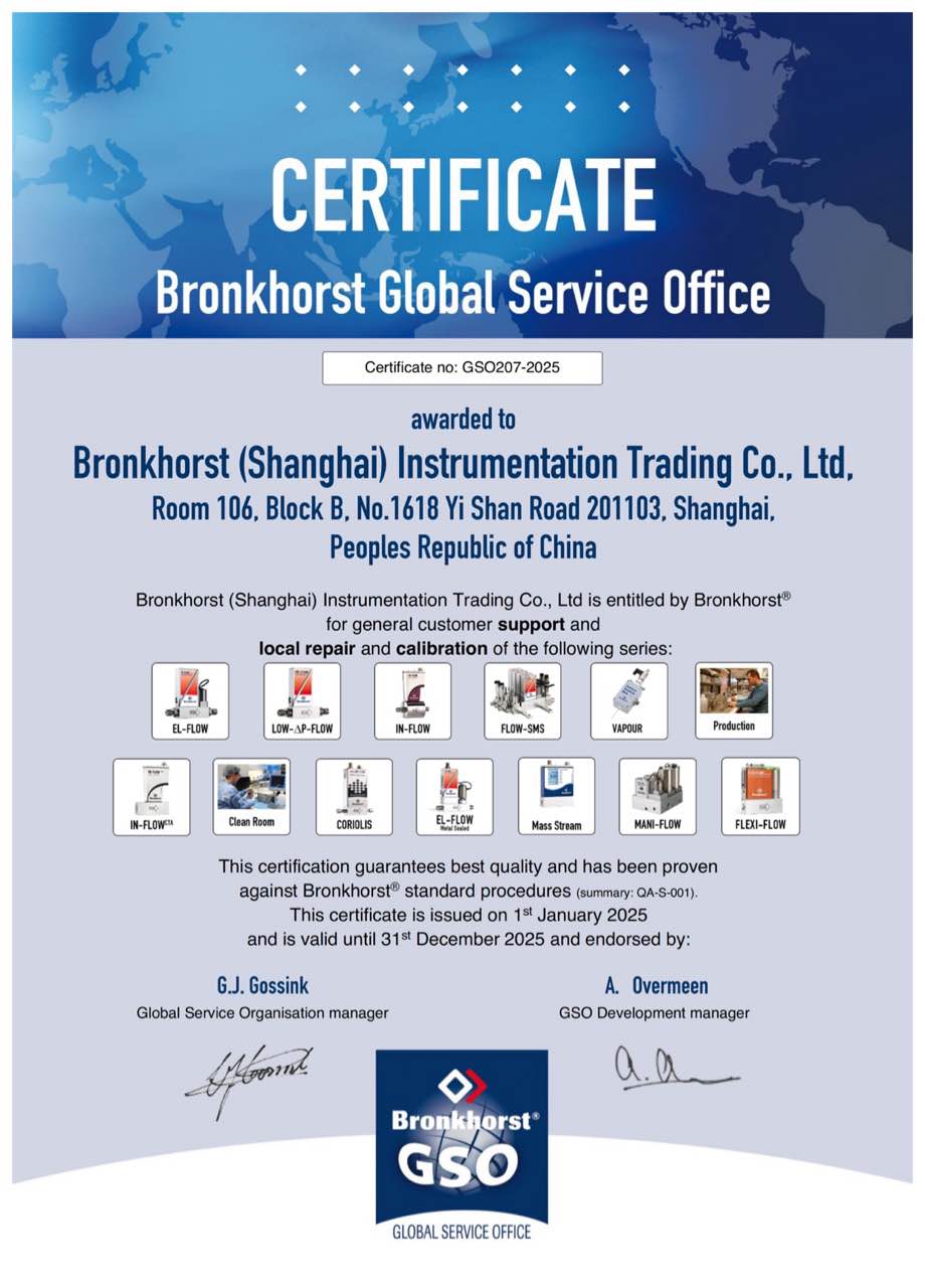 布瑯軻鍶特(上海)是荷蘭Bronkhorst High-Tech B.V在中國(guó)的銷(xiāo)售及售后服務(wù)中心,擁有設(shè)備齊全的高技術(shù)超凈室,專(zhuān)為中國(guó)客戶提供本地產(chǎn)品技術(shù)支持、維修和服務(wù);訓(xùn)練有素的服務(wù)團(tuán)隊(duì)擁有高精湛的產(chǎn)品技術(shù)知識(shí),為客戶提供高效的銷(xiāo)售和售后服務(wù)支持。可通過(guò)service@bronkhorst.cn這個(gè)郵箱隨時(shí)聯(lián)系到我們。